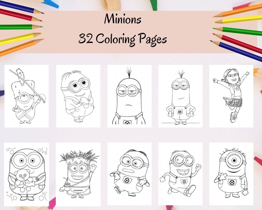 - a PDF file containing Minions 16-32 Coloring Pages (Size A4 - 210 x 297 mm)